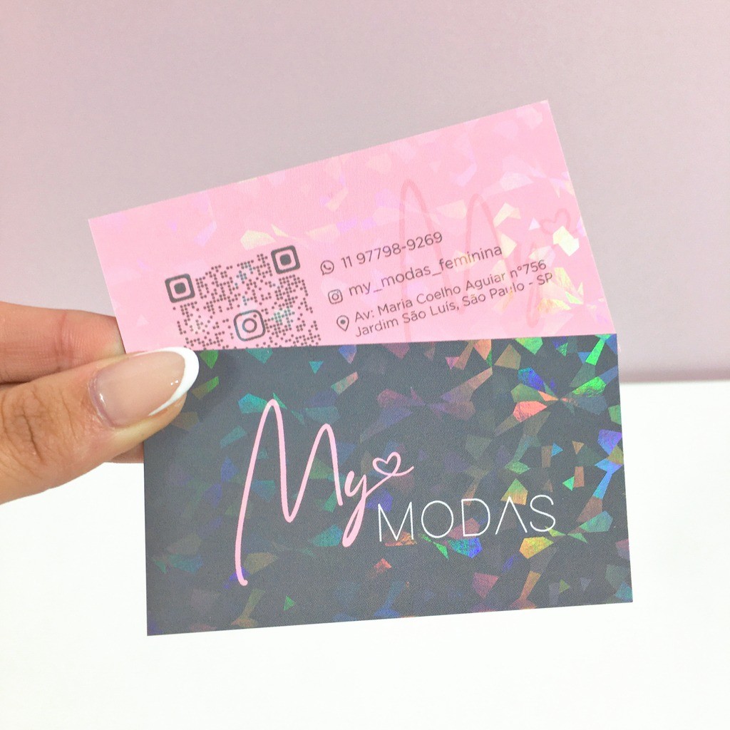 Cartão Holográfico frente e verso, garantindo um brilho excepcional e proteção contra desgaste.