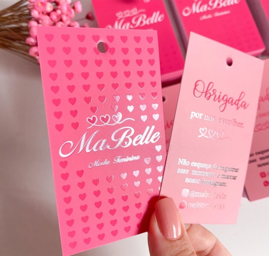 Tags são excelentes para destacar e divulgar a sua marca, destacando a sua logotipo com Verniz Localizado frente e verso, garantindo brilho e durabilidade do material